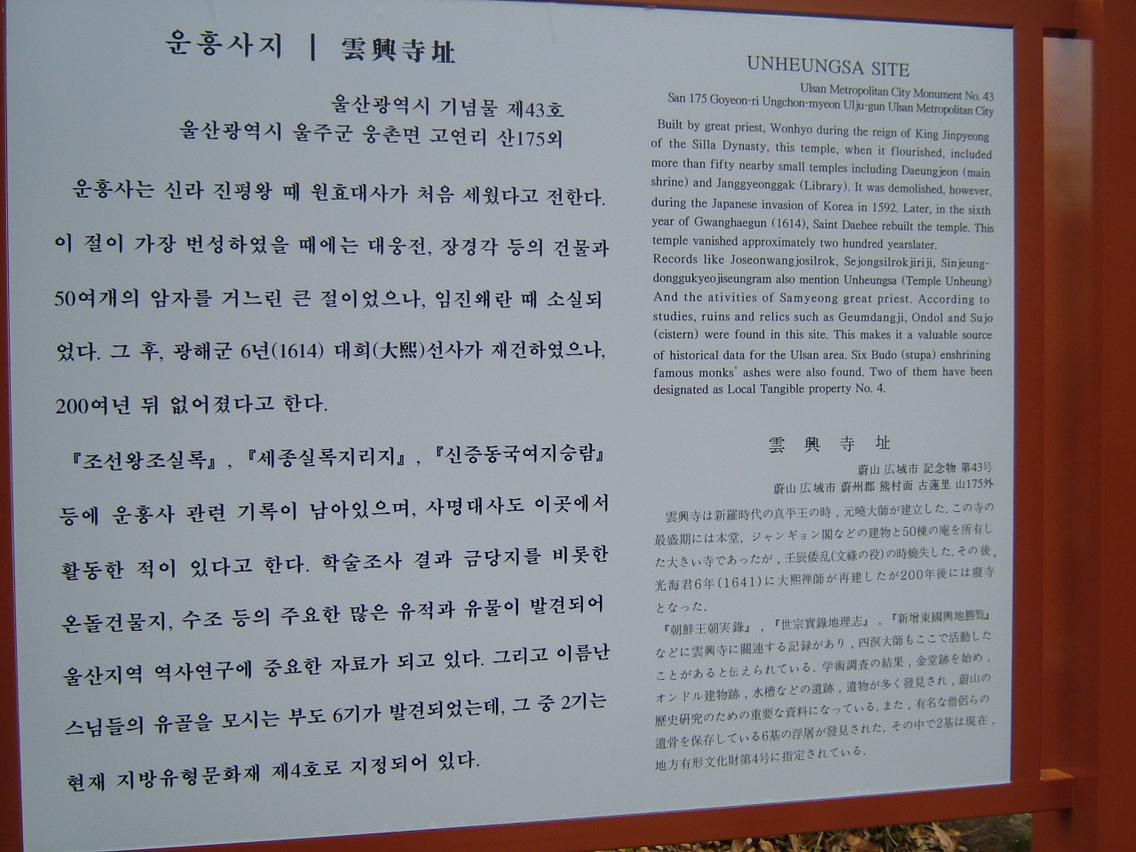 운흥사지에 답사가시면 운흥사지를 지키고 계시는 운흥사의 야은 스님께 들리셔서 설명을 청하시면 도움이 되실겝니다. 운흥사 052-260-2317 | |