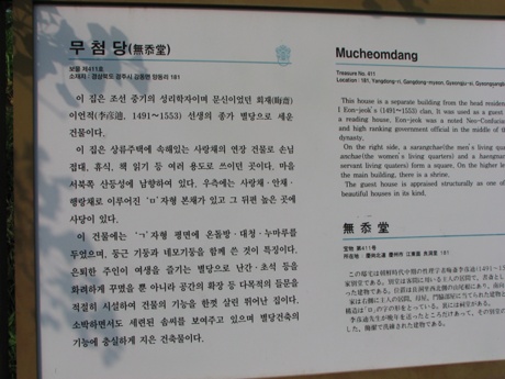 무첨당은 회재선생의 다섯 손자중 맏손자인 李宜潤(이의윤)공의 號(호)이다.