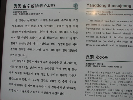 양동마을에 정자가 여러개 있지만 그 중에서 규모가 가장 큰 것이라한다.