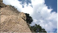 ▶ 방치된 탑재 ▶ 열암곡 석불좌상 ▶ 신발견 마애대불 남산을 지나면 2005년 복원 열암곡 석불좌상 옆에서 쉽게 만날 수 있는 근처를 지나던 임희숙 해설사가 발견. 무게 70톤의 대불이다 도괴된 석재들 땅에 박힌 불두를 발견했다