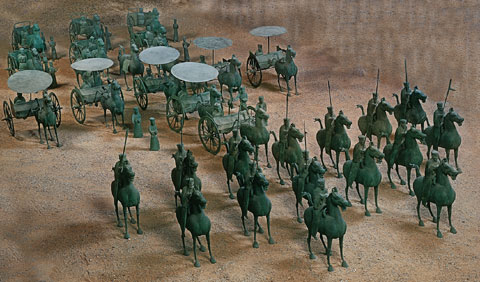 - ▲ 1969년 중국 간쑤성에서 출토된‘청동마차행렬’로, 한나라 시대의 의장 대열이다. /국립중앙박물관 제공