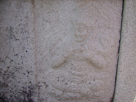 사자관을 쓴 건달바, 팔이 짧고 가늘며, 빙긋 웃는 얼굴이 미련스럽게 느껴진다.