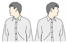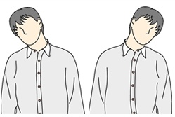 어깨를 펴고 머리를 오른쪽 옆을 향해 숙이는 운동을 좌우로 5회 반복 실시 합니다.