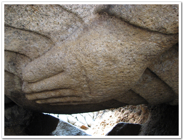 엎어져있는 마애불 <-----다리쪽 ----->머리쪽