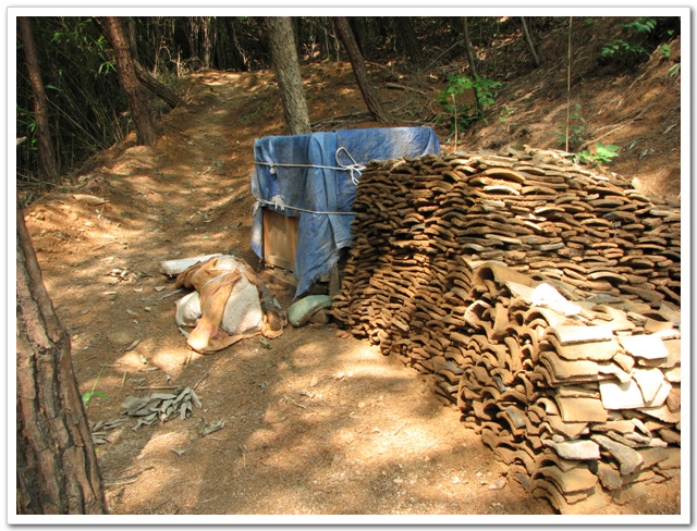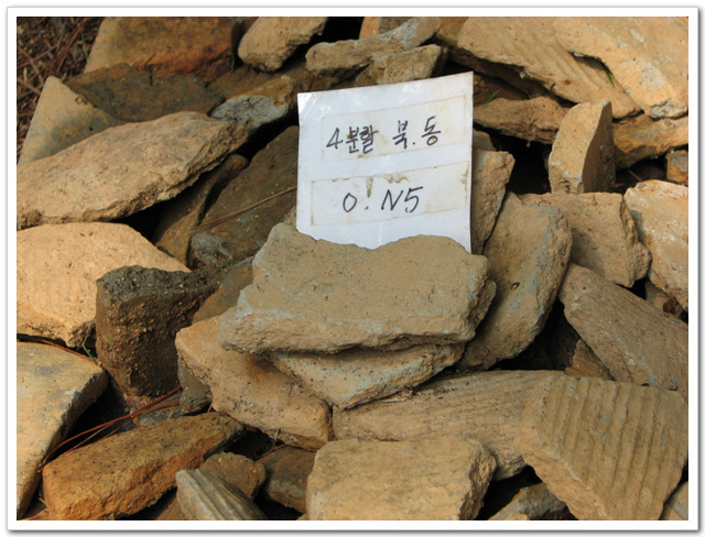 출토된 기왓장 불두보관중인 상자