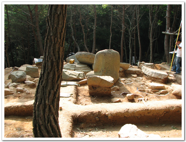 불두발견으로 발굴조사중인 석불좌상